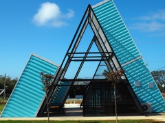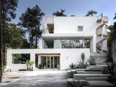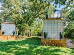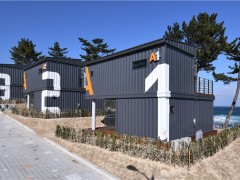 有一家簡約的特色集裝箱住房,由40尺的海運集裝箱改裝建造,清爽自然,給人輕松舒適的感覺。純白色的外墻波浪板旋轉樓梯沒有藏于側面或后方,舒坦大方地設計在正[查看詳情]