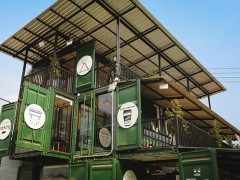 軍綠色咖啡小館,J’COFFEE樓高三層,由多個集裝箱搭建造而成。從下而上,每層集裝箱數(shù)量減少,呈現(xiàn)金字塔式造型,個性凸顯,配合綠植環(huán)境,打造軍綠森林風(fēng)格。[查看詳情]
