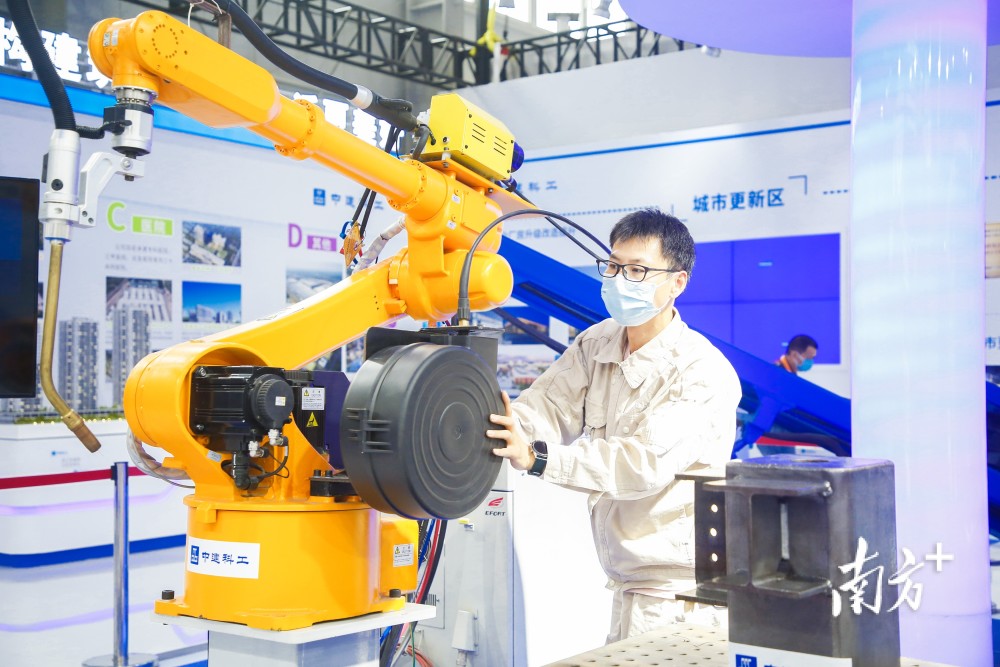 在智能制造展區,一臺正在平穩運行中的“機械手臂”引起了游客駐足圍觀,工作員正在操作著它模擬焊接作業展示。操作員介紹“這是機器人智能化裝配+焊接工作站,也可以叫焊接機器人,在車間生產線以及項目一線均可使用。”焊接機器人能實現自動識別和抓取工件,裝配完成后,運用相機視覺、激光掃描識別焊縫,實現復雜圖案焊接。該企業充分運用數字化設計技術、智能生產信息系統等先進技術,在廣東惠州建成了國內首條重型鋼結構智能制造生產線。生產線應用20余種關鍵技術裝備,形成了包括智能下料中心在內的七大智能加工中心,以及鋼結構全生命周期管理系統、機器人視覺識別智能焊接技術等12項核心制造技術。