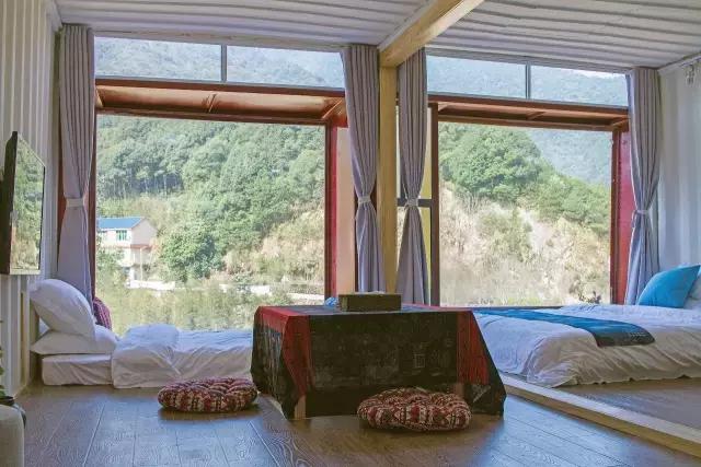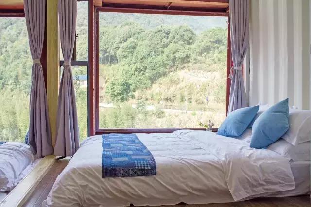房間有兩個(gè)超大的落地窗,山景一覽無遺,沉浸在大自然的山景里,一個(gè)人慢慢靜心下來。