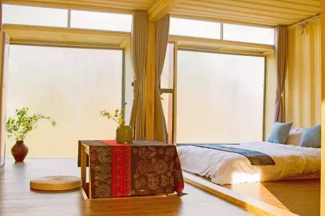 室內(nèi)保留了原有的味道,沒有做過多的裝飾,主人父親親手打造的榻榻米式的小茶幾,木料是老房子上拆下來的,配上草編蒲團(tuán),在這里品茗聊天最是舒服自在。