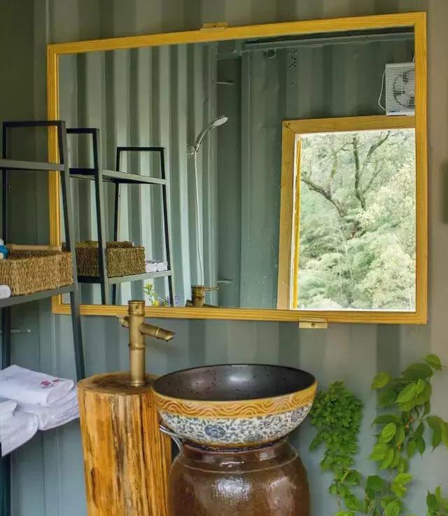 他用集裝箱搭建了一座房子,線條利落,帶有濃郁的工業(yè)風(fēng)。但是在這個(gè)水墨畫的村子里卻并不顯得很突兀,集裝箱的改造既減少了對(duì)生態(tài)的破壞,也而是一種創(chuàng)新,健康,環(huán)保的新態(tài)度。