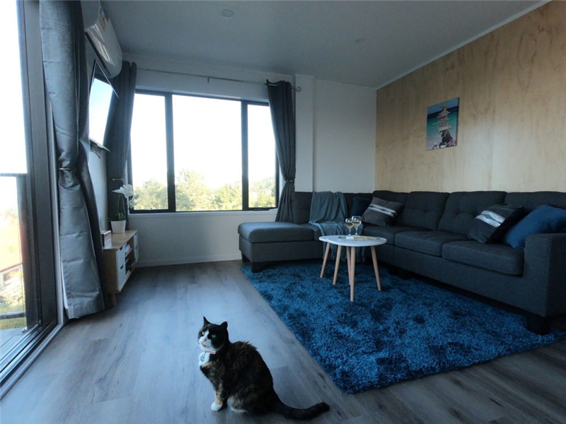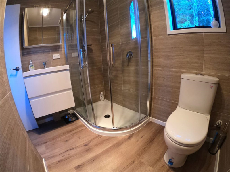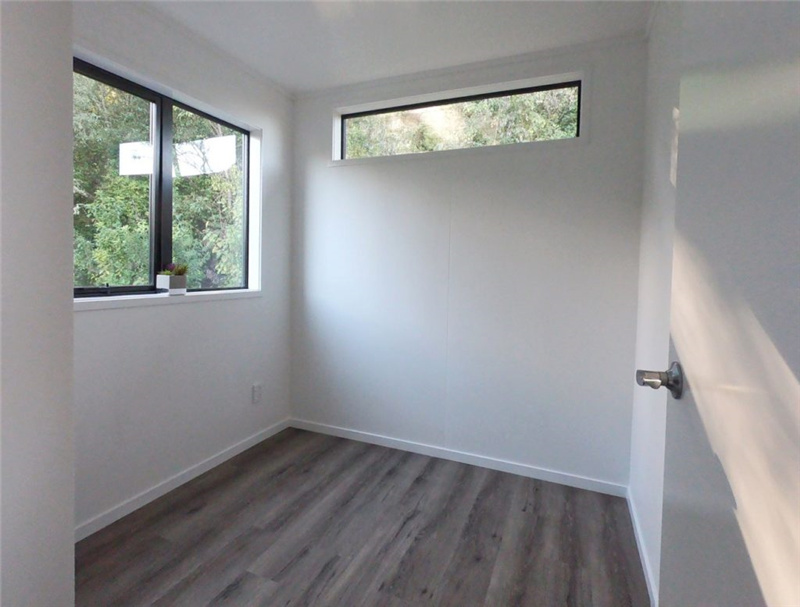 主臥室和起居區的寬度為1.5個容器,比單寬度模型具有更多的空間。除了主臥室,房屋內還有一個空置的次臥。為了增加防潮效果,衛浴間的墻面和地板都貼上了瓷磚,整體空間比較小巧。