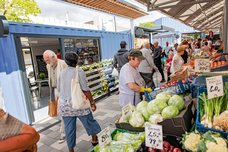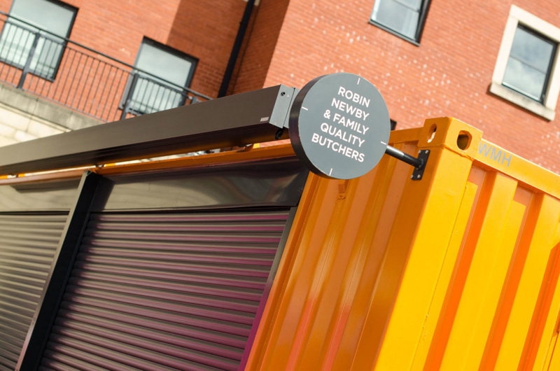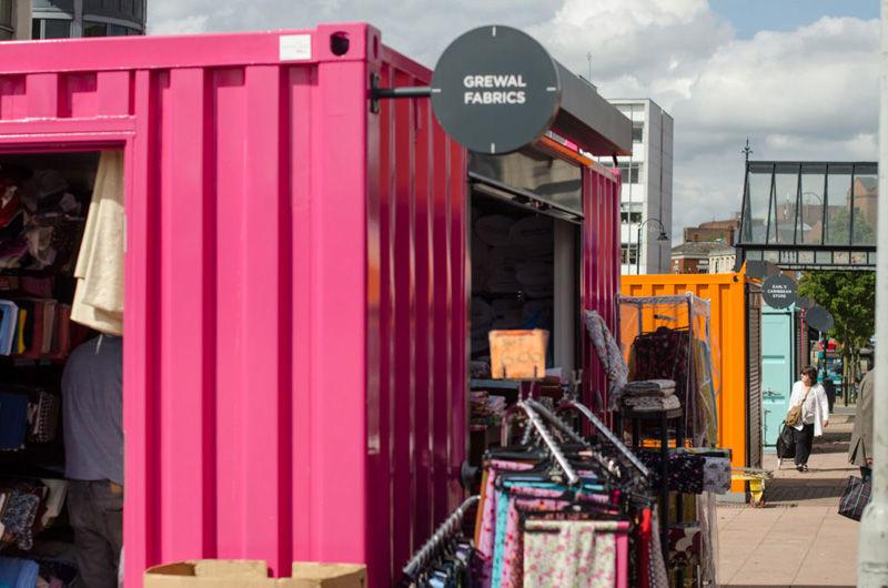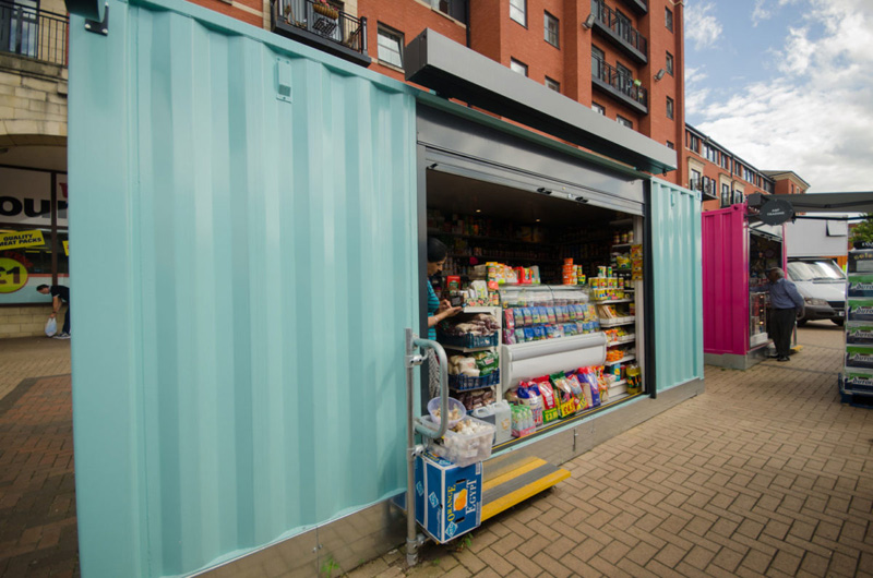 這是位于英國的伍爾弗漢普頓市場,經(jīng)過重新開發(fā)和搬遷成為了城市中心歷史建筑重建的重要部分。為了能讓市場快速地重新運轉(zhuǎn)起來,集裝箱便是本次重建的主角。同時,集裝箱的模塊結(jié)構(gòu)能將每間商店獨立分隔,各自管轄自己的店內(nèi)衛(wèi)生環(huán)境,保證了市場整體的整潔。