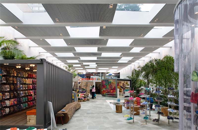 當紅的Havaianas哈瓦牌人字拖打入了巴西的國內市場,無論是室內專賣店,還是快閃店,都采用集裝箱打造全新店面風格。哈瓦那人字拖之所以能成為明星型人的首選,是因為其款式多多,層出不窮。用來搭配牛仔褲,工裝褲,T恤,裙子熱褲等等,都是時尚潮人必備的休閑選擇。