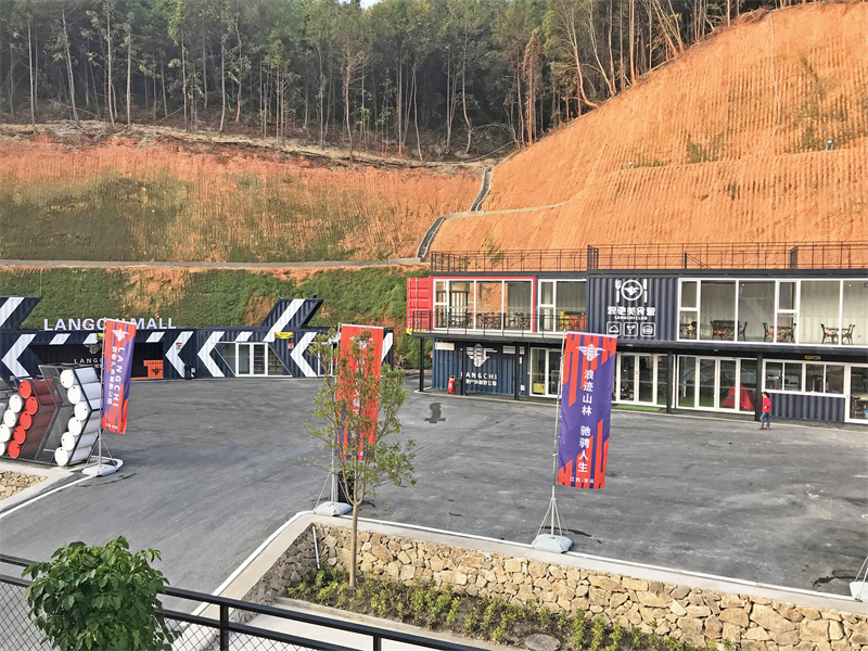 除了有集裝箱制成的接待區(qū)、休息區(qū)和購(gòu)物中心,園區(qū)內(nèi)還有許多工業(yè)元素的影子。比如小巧的保安亭、油桶拼接而成的雕塑等,點(diǎn)綴著越野場(chǎng)的硬漢工業(yè)風(fēng)。浪跡山林,馳騁人生。