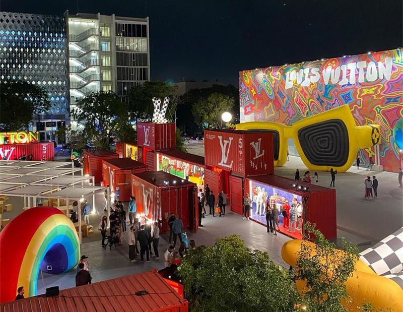 為了展示品牌2021年的春夏男裝,路易威登(Louis Vuitton)在邁阿密搭建了一個(gè)宏偉的集裝箱展廳,其中包括維吉爾·阿布洛(Virgil Abloh)的設(shè)計(jì)。該品牌的創(chuàng)造性方法一直以來(lái)都備受稱(chēng)贊,選用集裝箱建造服飾展柜將能使容器的工作得到真正的突破。