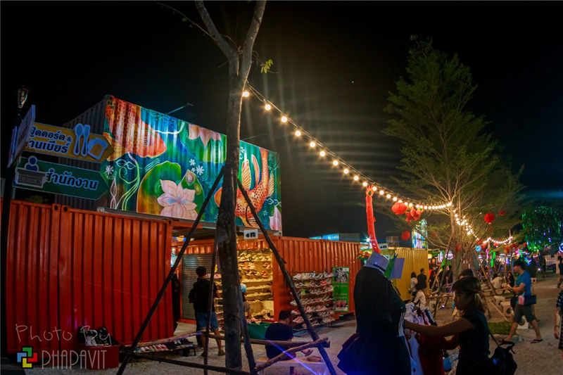 市場內還用了燈籠、龍等掛飾裝飾,為市場增添一些傳統的風味。有沒有發現現代工業集裝箱和傳統文化燈籠的結合毫無違和感?而且把現場修飾得更喜慶和活躍。感覺在這個市場里面隨便拿一處做背景都是網紅拍風情小街的感覺啊!再也不用擔心沒有漂亮的照片發朋友圈啦!