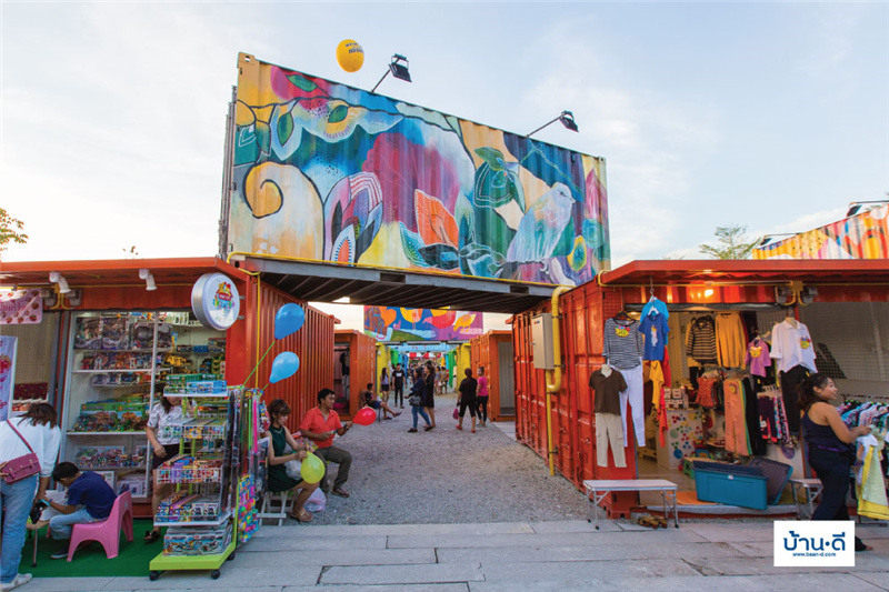 市場里面有服裝店、精品店、餐廳和咖啡館等,都是用集裝箱間隔的一個個小商鋪。而每個商鋪都用不一樣的顏色涂層填充,以區別不同的商家。所有集裝箱都采用半開放式,去掉了其中一個集裝箱壁,直接用卷閘代替,方便營業。所有商家和商品琳瑯滿目,絕對是休閑、娛樂、購物的好去處!