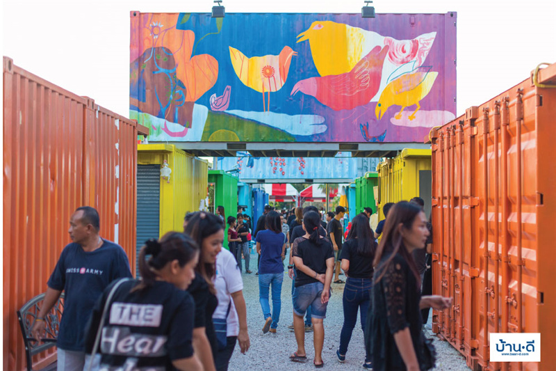 這是一個由集裝箱打造的商業街,在這里,相當于進入了一個大型的涂鴉藝術跳蚤市場,有各種各樣功能的集裝箱商店,滿足你吃喝玩樂的各種需求。市場的大門口由三個集裝箱堆疊而成,嵌上醒目的招牌大字和涂鴉著樹的圖案,從這里開始就要進到集裝箱涂鴉藝術世界了哦~白天金屬感爆棚,燈光夜景則十分夢幻!