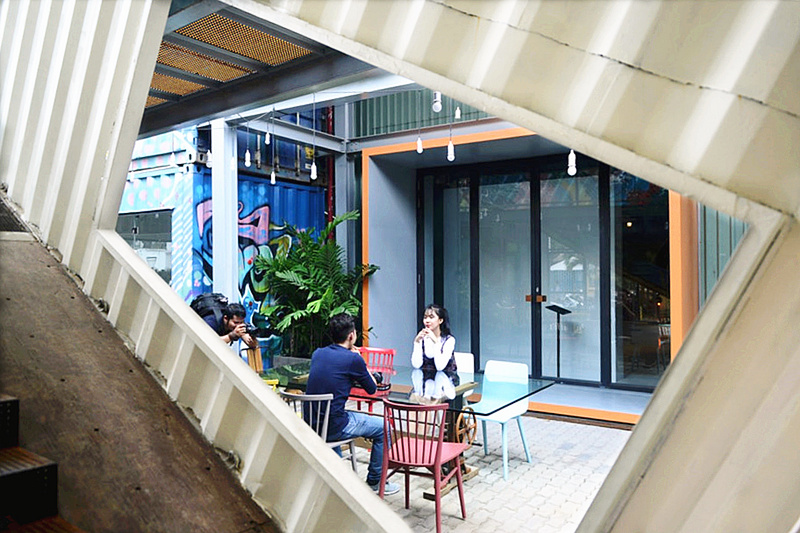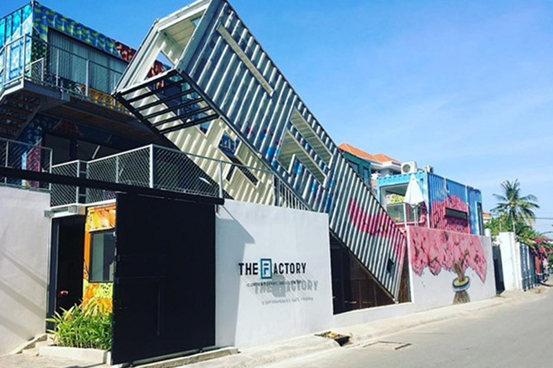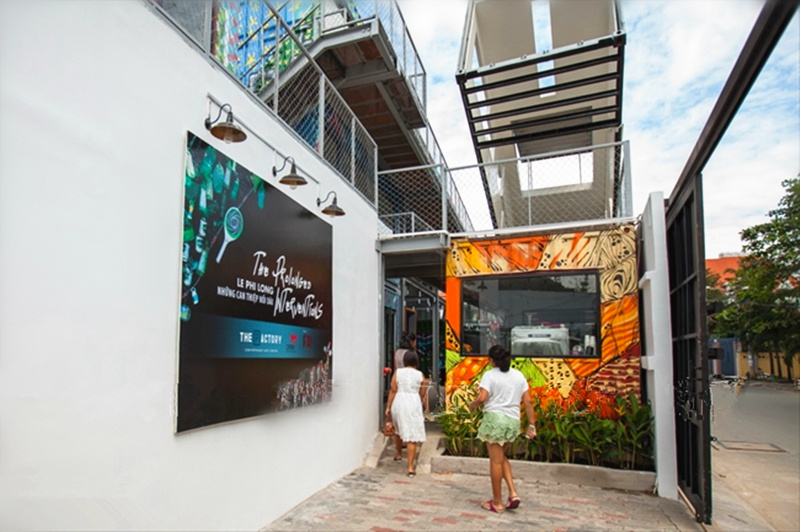 THE FACTORY 現(xiàn)代藝術(shù)中心,位于越南西貢。THE FACTORY 現(xiàn)代藝術(shù)中心,意在打造更貼合當(dāng)?shù)厍嗄甑漠?dāng)代藝術(shù)空間,并發(fā)更多創(chuàng)意和藝術(shù)活力,活化整個(gè)城市街區(qū)。中心的門口處是海運(yùn)集裝箱打造的通道樓梯,體墻面有THE FACTORY 現(xiàn)代藝術(shù)中心的醒目logo鏤空窗,令人印象深刻。