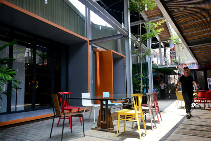 當(dāng)?shù)卦械乃囆g(shù)場(chǎng)地較少,對(duì)于年輕一代日漸增長(zhǎng)的需求已經(jīng)不能滿足。藝術(shù)展覽、藝術(shù)工作坊、畫廊等之前都需要在其他廣場(chǎng)場(chǎng)所借位置舉辦。而現(xiàn)在則不一樣了,有著出色集裝箱外觀和多功能藝術(shù)活動(dòng)空間,THE FACTORY 構(gòu)造了培養(yǎng)藝術(shù)思維、藝術(shù)學(xué)習(xí)的地方。