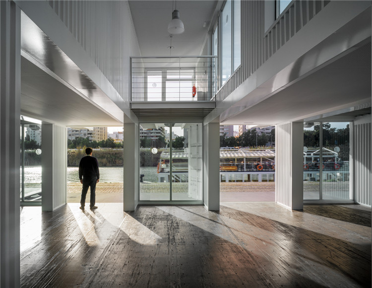 港口和城市都具備著不斷變化的共同特征,為了解決兩者之間互動所帶來的挑戰,碼頭建筑必須具備能夠隨著時間變換而做出改變的能力,其中一種解決方案就是采用模塊化的工業建筑設計。它既能強調港口與眾不同的本質,又能確保兩者建筑設計的城市一體化。為此,塞維利亞港口新建設了一個新的郵輪碼頭,它是靈活、多功能、可擴展、能輕易移動、甚至是能夠運輸的。項目占地面積為1096 m2,并能通過不斷調整模塊的數量來適應隨時間增長的乘客量及碼頭空間的未來前景。該模塊化碼頭建筑坐落在穿過塞維利亞的瓜達爾基維爾河沿岸,以高質量的建筑項目促進港口與其周邊城市的融合。