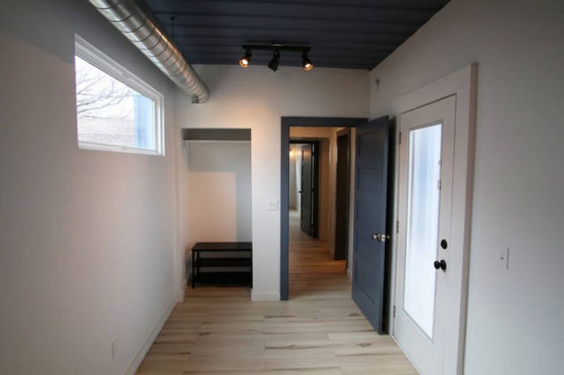 房屋內設有瓷磚貼面的主浴室和被漆成綠油油的洗衣房。衛浴間設計的色調以藍色和白色為主,環境濕潤的淋浴間使用了瓷磚貼面以防潮,洗漱臺旁開設有面向院子的窗戶,創造通風透光的條件。被漆上綠色油漆的洗衣房已經設置好了線路和管道等,安裝家電后便可投入使用。