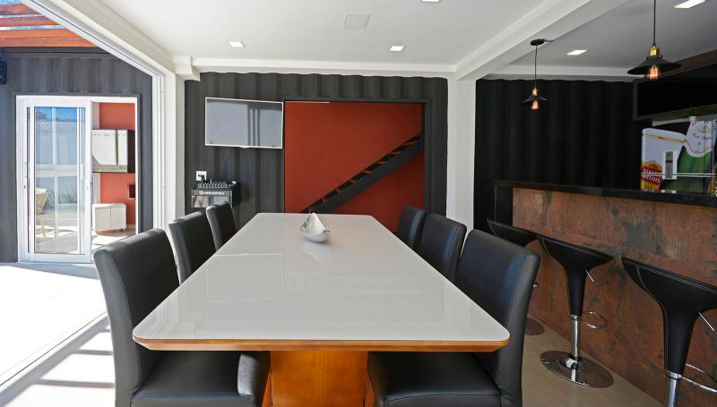 泳池永遠是別墅的標配,炎炎夏日,除了想去海邊,也想到私密的泳池別墅度假。不需要繁華的設計,簡約式的建筑風格反而顯得更清涼。極簡首選集裝箱,自帶的線條效果就已經時尚感十足!下面介紹的的集裝箱別墅共擁有上下兩層結構,由多個集裝箱改造堆疊而成,其建筑面積達200平方米。別墅前擁有一個私家泳池,還有帶遮陽傘的休閑桌椅,是夏日度假的勝地。