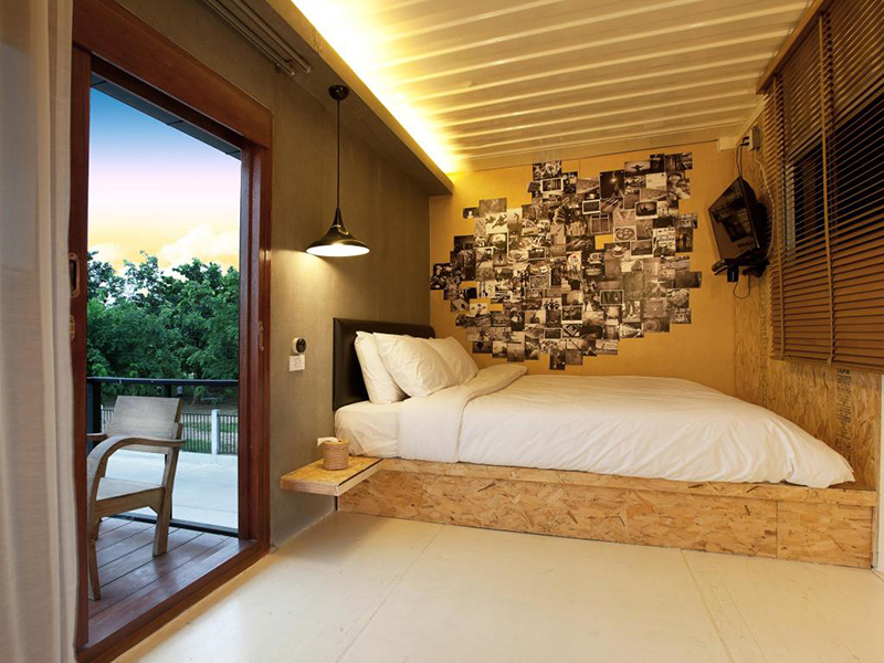 客房的格調(diào)主要以溫馨為主,大床型榻榻米讓家具和房間結(jié)構(gòu)更加融合。房外擁有獨(dú)立的陽(yáng)臺(tái),你可以清楚地看到集裝箱元素充斥著你的日常。