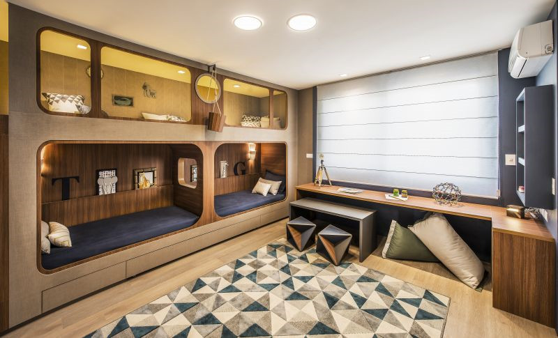 住宅展示了多種不同的臥室設計,包括豪華的主臥、精致的次臥還有多床的兒童房等。同時也配備了不同的衛浴間設計,從獨立的淋浴大空間到走廊式設計應有盡有,還有一個洗衣房,滿足不同的生活喜好和習慣。