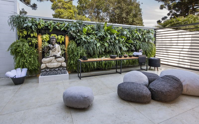 花園獨有一個禪宗空間,帶來了沉思和逃避日常生活壓力的環境。受日本花園的啟發,他探索了黑色,白色和綠色植被之間的對比。該空間的另一個亮點是垂直水箱,可以收集雨水并將其重新分配以供家庭使用。自動化灌溉系統可確保植物的健康和美麗。