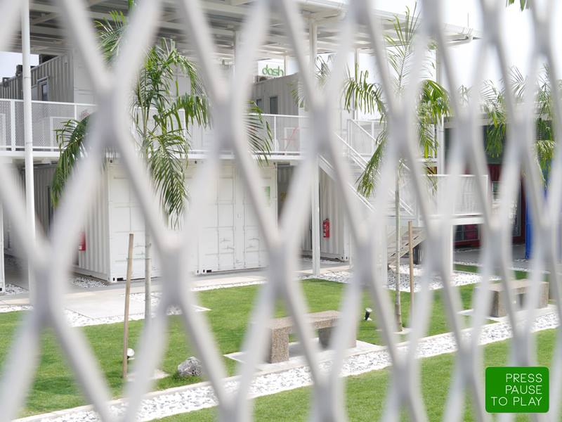 這些房間是從舊的集裝箱中發展出來的,反映了該地區的創新和高科技。白色涂層的集裝箱用作住宿房間,彩色涂層的集裝箱則是餐廳。集裝箱住宿都是二層設計,提高土地利用率,同時為走廊添加一些休閑區,再加上房號標志的涂鴉,使得原本單調的住宅多了一些俏皮。