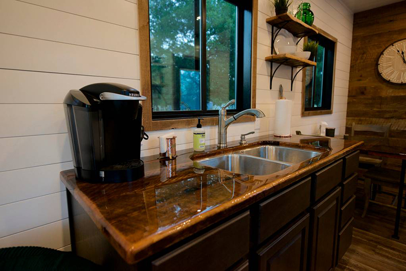 室內(nèi)的風(fēng)格有了木材的裝點(diǎn)顯得比較溫馨,從細(xì)節(jié)看你會(huì)看到其實(shí)桌子上是鋪設(shè)了相似紋路顏色的大理石,風(fēng)格統(tǒng)一卻讓桌子更耐用。