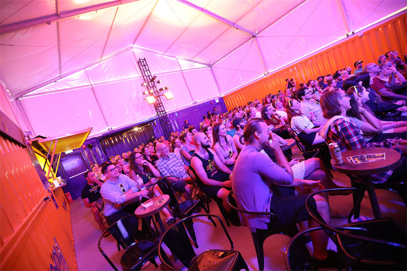 這是國外的一個喜劇節,為了能響應節日的主題,現場需要一個可以在露天搭建的劇院裝置,用以出演或者播放戲劇。為此,服務商為其提供了一個移動架構的概念。用七個集裝箱打造了一個大型的露天影院,隨到隨建,配備可拆卸的帆布屋頂,成為世界上第一個使用回收集裝箱建造的移動影院。