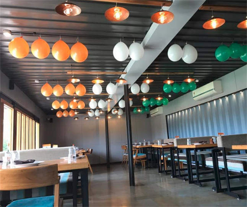 室內(nèi)的餐廳布局并不復(fù)雜,包括一個室內(nèi)餐廳,一個戶外聚會空間,一個廚房,存儲和餐廳所需的周邊服務(wù)。較大的集裝箱沿其較長的邊緣并排堆疊,形成主要的室內(nèi)餐廳。