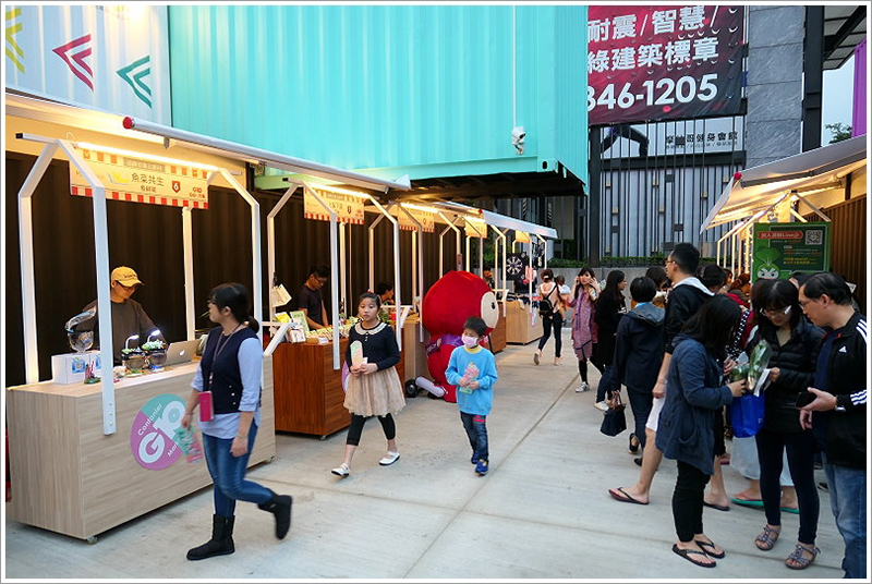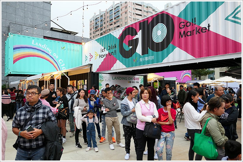 而市集內還有一些有趣的自拍背景墻,比如木制階梯舞臺、用菜籃堆疊出的G10文字等,還有美味的小吃,都讓這個市集趣味無限,吸引了一波又一波的人流前往。