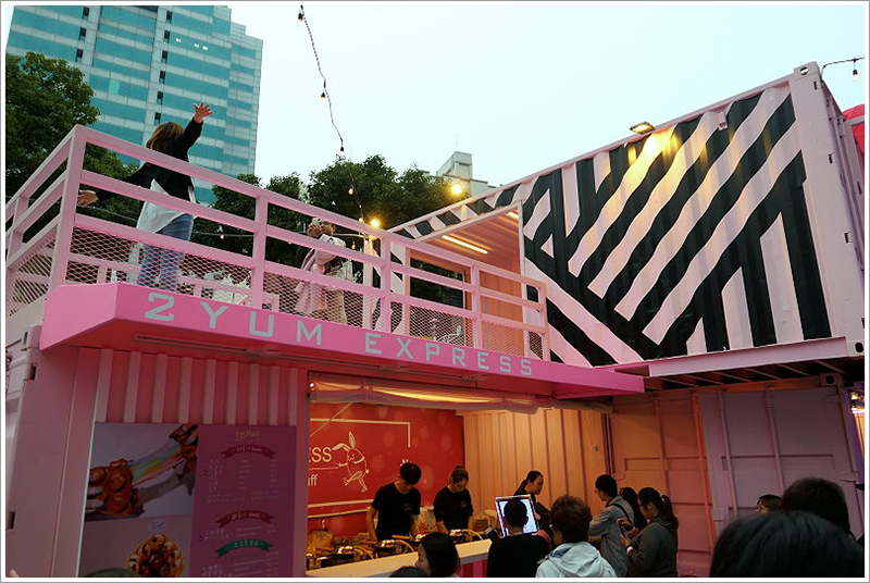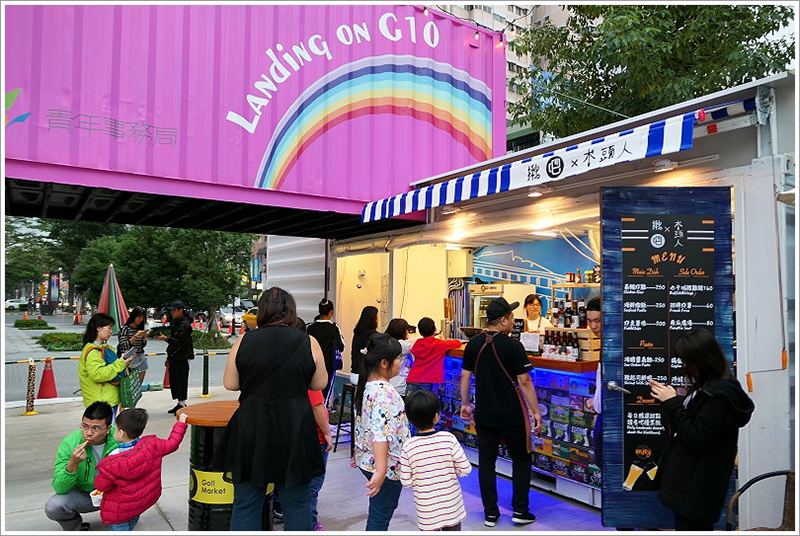 到了文青主題區,畫風就轉變成異國料理餐廳的天下,包括美式紐約布魯克林、歐洲地中海及法式典雅風等等。大大的市集名字被噴漆在商鋪頂上的集裝箱壁,線條搭配成北歐的樣子。主題區中心還鋪設了一塊人造草皮,搭配大陽傘和戶外用餐區,讓人有種在野餐的感覺。