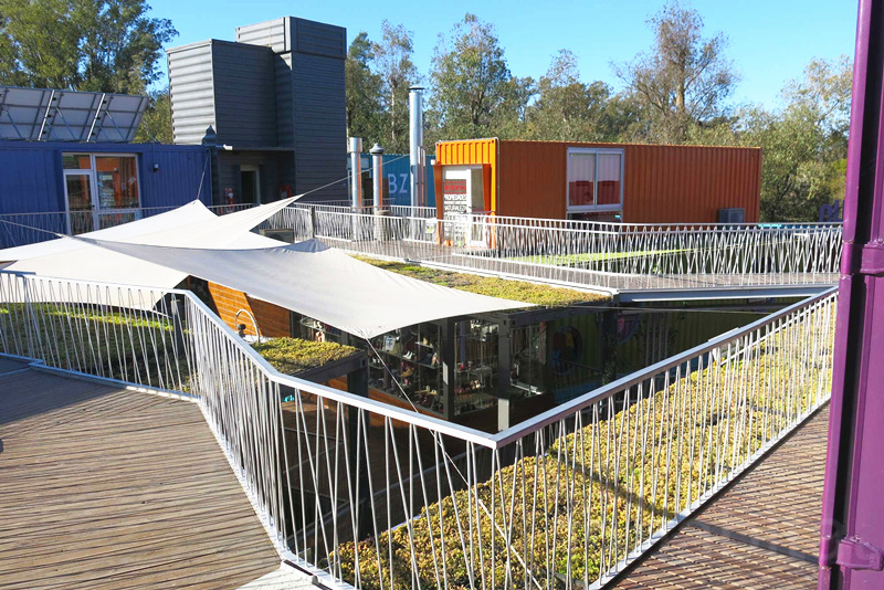QUO Container Center的設計盡求可以做到綠色環(huán)保,大量的開放空間可以利用自然光線,轉換率較高的太陽能板也被運用到其中,提供電力。二樓部分平臺做了綠化植物的鋪植,隔熱的同時又美觀。