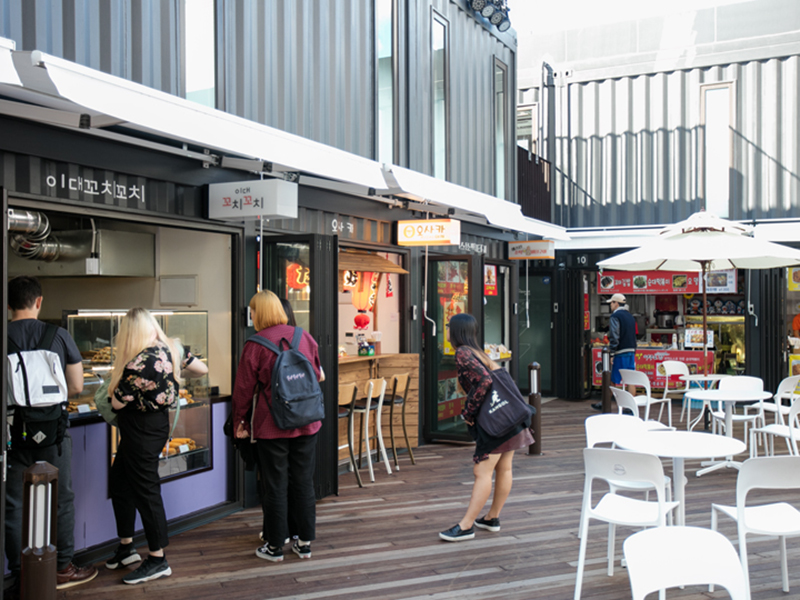這個“鐵箱子”這是首爾的一個新景點,是建筑界的“網紅”——集裝箱商場,地點正正坐落于梨大正門前購物街盡頭,位置非常方便,沿著購物街一路掃貨之后便可以到達,開啟又一輪血拼,果然是女人都愛的地方啊!難怪這時候歐巴也要爭寵呢!