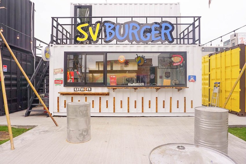 SV Burger 美式漢堡店,店內主要用整塊原肉來制作漢堡。白色與黑色的色調結合,盡顯工業風。二樓設有戶外平臺和休息室,給游客提供一個悠閑享受的空間。