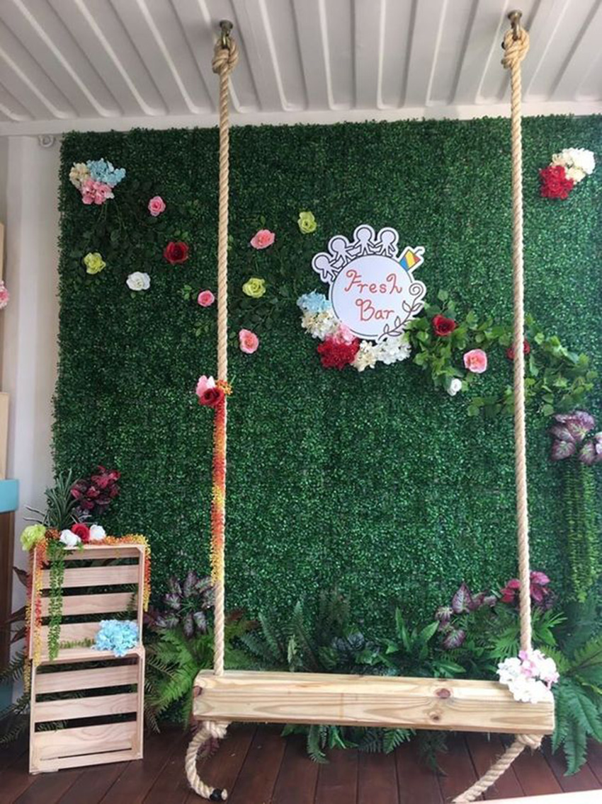 Fresh Bar 鮮果吧,以大地色系為主的迷你城堡,最重要是它比較有特色,外觀看上去不像是集裝箱,實際上是用木板搭配上一些裝飾,包裹著集裝箱,讓整個商鋪給人一種仿佛置身于童話式的城堡中。室內充滿著綠色的元素,享受食物之余還能感受著這種綠色的氣氛。
