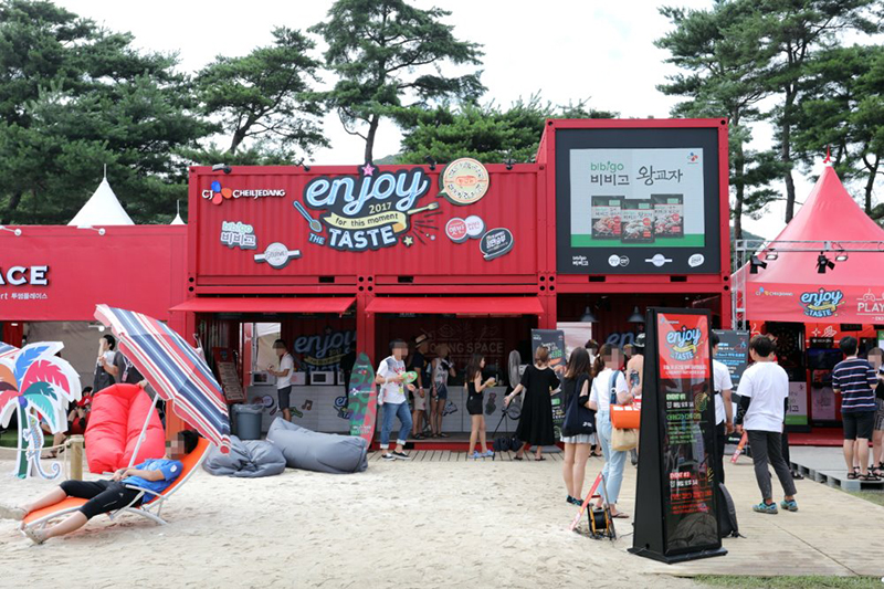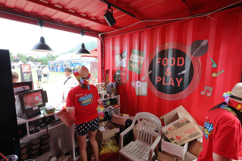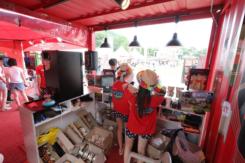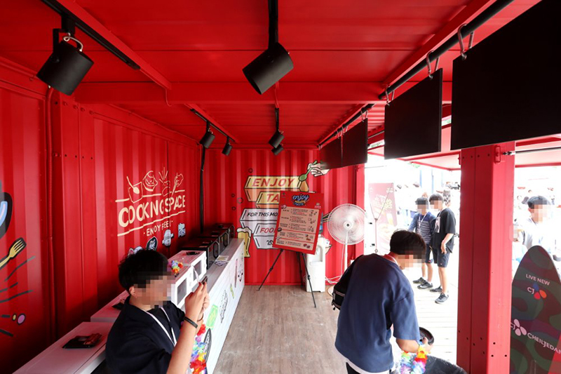 為了在節(jié)日中更好地提供各種配套生活服務(wù),韓國一家食品公司在現(xiàn)場經(jīng)營了一個(gè)集裝箱攤位,以便可以在同一個(gè)空間內(nèi)解決餐飲和娛樂需求。