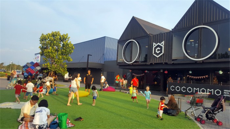 大型商圈落成的形式多樣,其中建筑選材也是亮點(diǎn)設(shè)計(jì)之一。以集裝箱為基本建筑結(jié)構(gòu),總體規(guī)劃為215公頃的旗艦鎮(zhèn)以生活方式為導(dǎo)向,打造了集飲食、娛樂(lè)、運(yùn)動(dòng)、休閑等為一體的大型商圈,成為了馬來(lái)西亞特色的集裝箱公園。