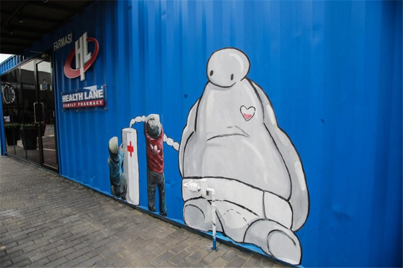【Ardence Labs】彈出式社區(qū)中心的建設(shè)旨在激活該項(xiàng)目站點(diǎn),因此集裝箱作為一個(gè)渾然天成的畫板被涂鴉了各種有趣的圖案,游客們可以在各個(gè)角落找到新潮的打卡點(diǎn)。該項(xiàng)目為居民和訪客提供一個(gè)會(huì)面、工作和娛樂(lè)的場(chǎng)所。