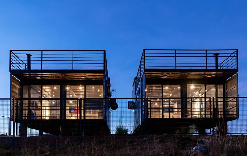 這個建筑項目是基于工業化模塊化結構的概念,有兩個整體體塊,每個體塊由兩個20英尺的集裝箱平行連接起來,每個集裝箱總面積為34平方米。 從一個小房子的概念開始,在融合了超然、可持續性、減少廢物產生和抑制消費主義的文化中,這些容器遵循迷你住宅的理念,在這個狹小的空間里,客人擁有所有的便利和技術。