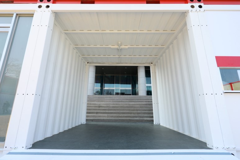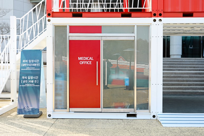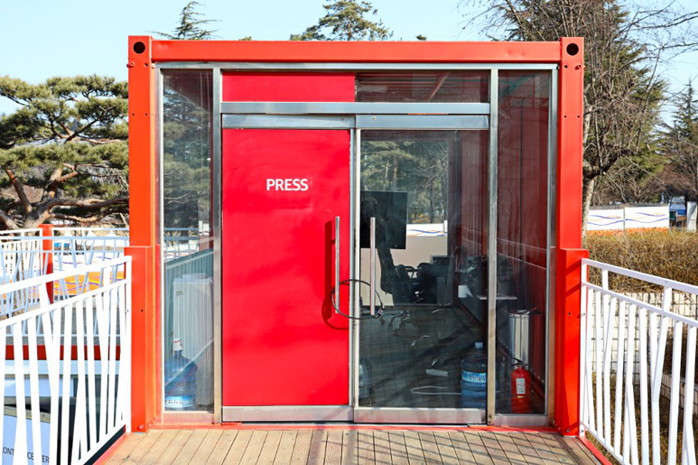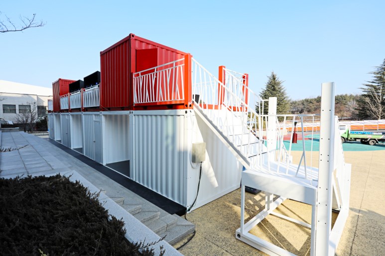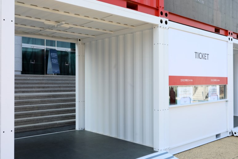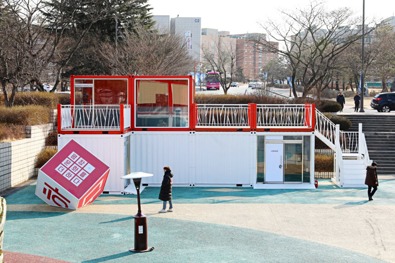 江陵原州大學(xué)是韓國的國立綜合大學(xué),坐落于東海岸的有力地勢,對觀光,環(huán)境,海洋等領(lǐng)域進(jìn)行大力投資。得益于優(yōu)美的環(huán)境,一些展覽和演出會選址在大學(xué)里進(jìn)行。為了方便臨時售票和進(jìn)出場,一些集裝箱建筑被佇立在了這里。