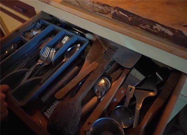 你別看這里“又小又破”,但到處充斥著對生活的認真,不說打掃干凈的臺面,就連各種餐具,也用專門的抽屜進行了收納。