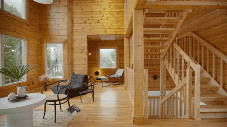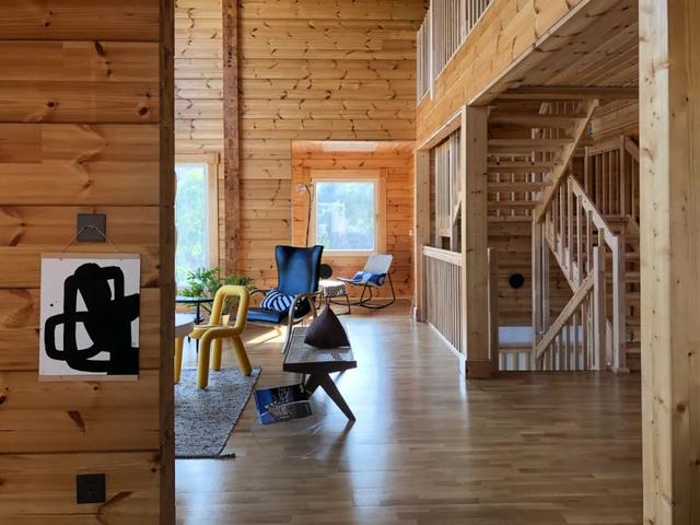 對Frank和曾曾來說,木頭是個活物,它會呼吸,能夠調節濕度.空間里如果過于潮濕,木頭會吸收濕氣,而如果過于干燥,木頭又會釋放水分。用這樣的木材搭建的木屋,本身已經足夠美了,因此Frank和曾曾基本保持了木材原本的樣子:“即便它有些疙瘩,也是自然的樣子。”