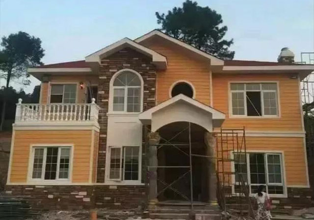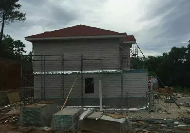 今天咱們來看下現(xiàn)場,到底它是怎么建起來的。這棟別墅相信大家都不陌生了,見過的實(shí)景別墅也不下十幾棟,但是這棟輕鋼構(gòu)造,僅用25天就建成,在當(dāng)?shù)剡€引起了一陣轟動(dòng)。