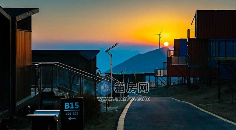 山頂的景色非常漂亮,空氣非常清新,早上可以看見日出,晚上可以看見漂亮的晚霞,環境不錯,集裝箱組合成的各種房間,小巧美觀,室內設施一應俱全。